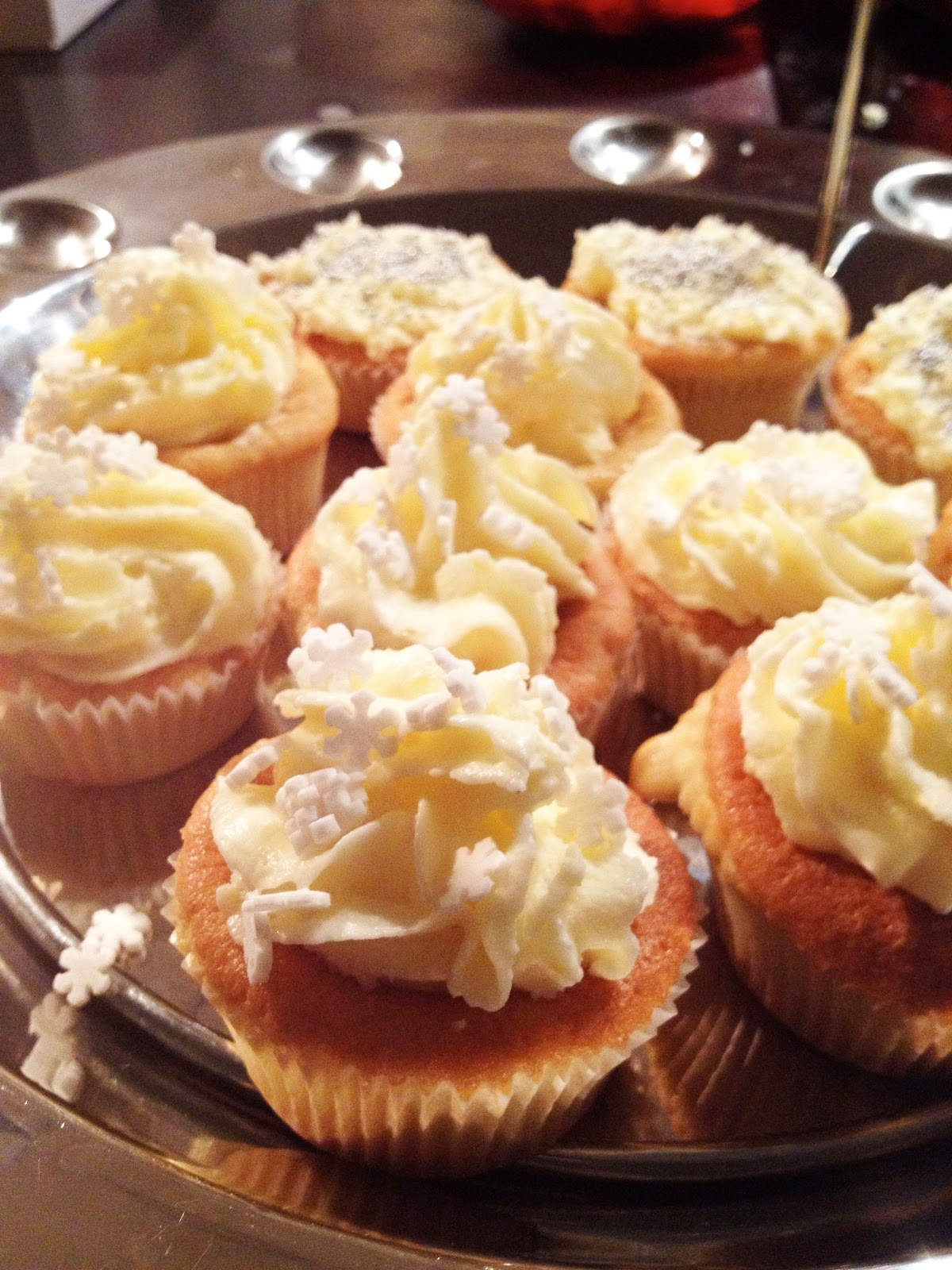 Bakade lite cupcakes för ett par veckor sen (med lite menare jag en sisådär 130 stycken), för Sebastians mammas kalas. Var väldigt populärt, fick massa beröm vilket var kul, fast jag skäms ihjäl när jag får komplimanger för något annat än mitt utseende. Verkar som de var goda i alla fall, fina kan vi ju alla se att de blev! Lyckades få frostingen riktigt kall den här gången, det är viktigast för att man ska få den att lägga sig sådär snyggt. Tycker Sebas mamma hade hittat riktigt snyggt strössel också, speciellt det med snöflingor!